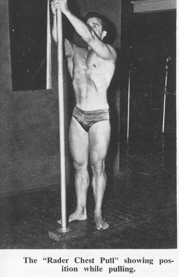 Now importantly, Rader was very systematic about when and where the Chest Pull should be performed. Indeed, he only ever really accompanied it with high rep squatting or deadlifting exercises. It was not then for the faint of heart, which may explain why the movement has fallen out of favour in bodybuilding circles.